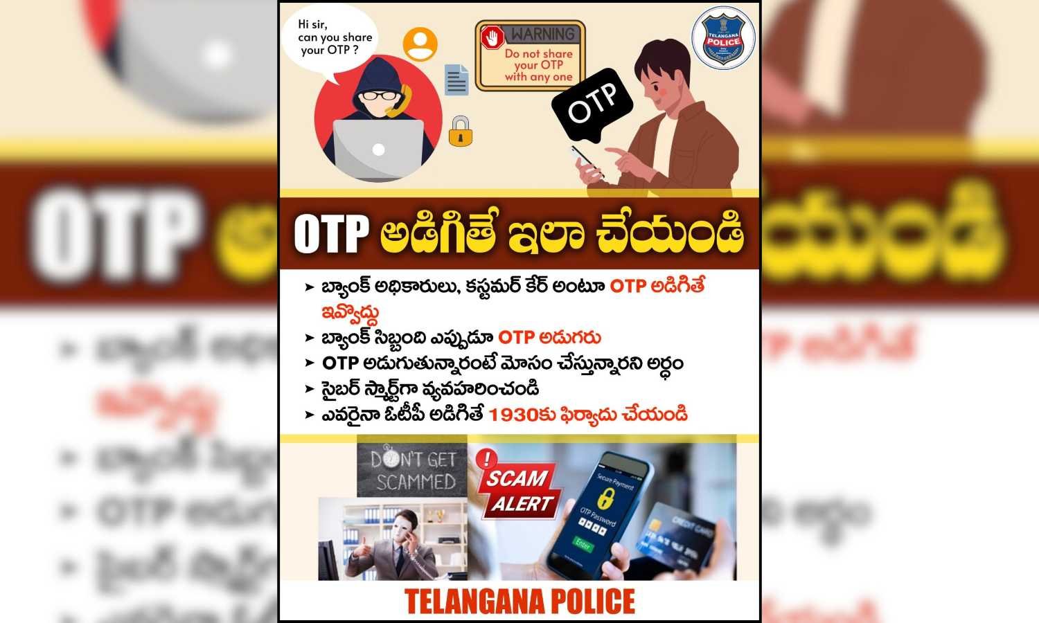Hyderabad: Police have issued an OTP fraud advisory urging citizens to stay alert as cybercriminals increasingly use fake calls, messages, WhatsApp chats, and phishing websites to steal one-time passwords and empty bank accounts.
